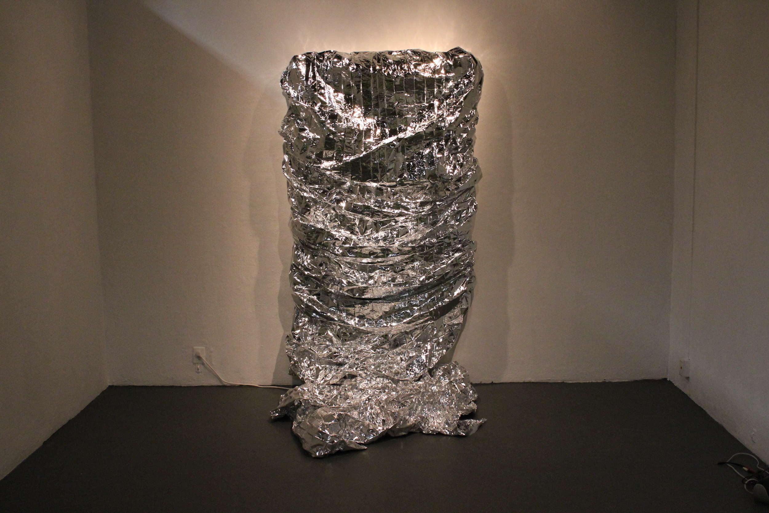 Cloth, Plaster, Chicken Wire, Plastic, Paint, LEDs, Arduino, Speakers, Computer Running Custom Max/MSP Patch, Sound Compositions, Audio Cables.